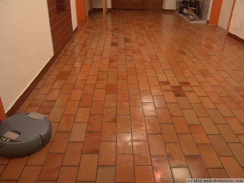 Verwendet wird er auf verschiedenen Bodentypen, inkl. Laminat- und Fließenboden. Auf letzterem ist es offensichtlich etwas schwerer, das ganze Wasser wieder aufzusaugen. Trotzdem funktioniert der Roboter auch unter diesen Bedingungen fantastisch gut.