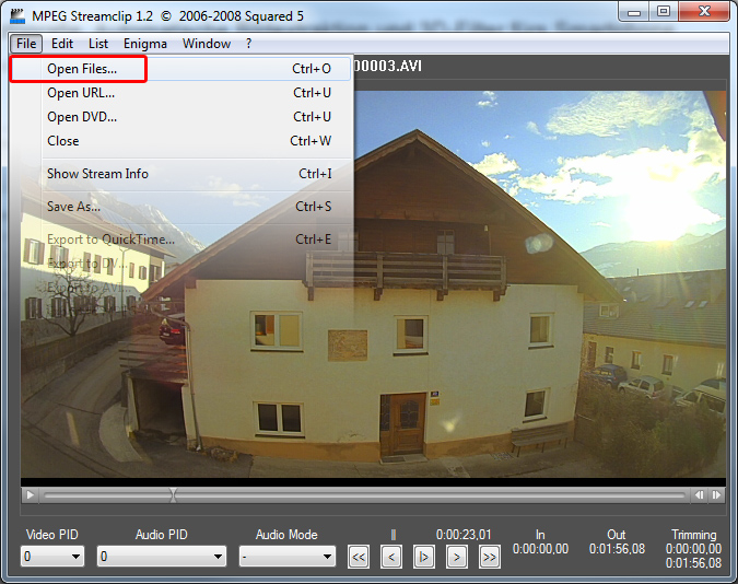 1a. open MPEG Streamclip and click on “File” – “Open Files“.